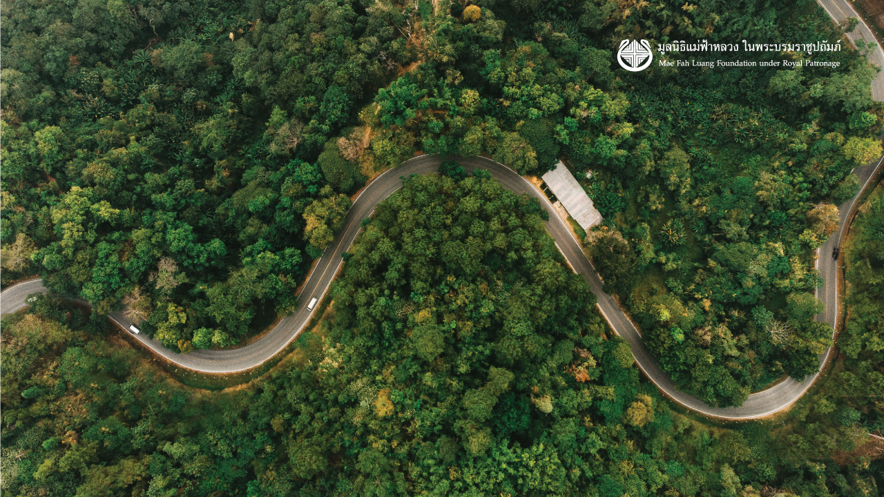 Background พร้อมโลโก้มูลนิธิแม่ฟ้าหลวงฯ สำหรับใช้ในการประชุมผ่าน Zoom